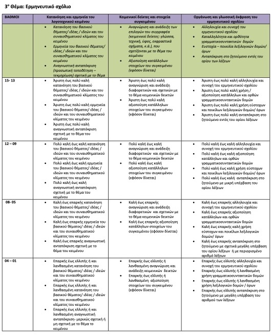Ρουμπρίκες Αξιολόγησης Εικόνα 1: Συνοπτική απόδοση νοήματος Εικόνα 2: Παραγωγή κριτικού και αποφαντικού λόγου Εικόνα 3: Παραγωγή ερμηνευτικού σχολίου